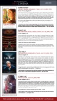 Art Cinema is a continuing series of art films, documentaries, independent films and hard-to-find international cinema. Tickets for showings are $10. The Lyric Film Society makes these films possible, and Film Society memberships are available for $100 annually. These entitle members to discounted tickets at $6. Supporting memberships at $250 provide one free ticket to all films.