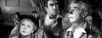Acclaimed Italian filmmaker Federico Fellini drew on his own circus background for the 1954 classic La Strada. Set in a seedy travelling carnival, this symbolism-laden drama revolves around brutish strongman Zampano (Anthony Quinn), his simple and servile girlfriend Gelsomina (Giulietta Masina, Fellini's wife), and clown/aerialist Matto (Richard Basehart). Appalled at Zampano's insensitive treatment of Gelsomina, the gentle-natured Matto invites her to run off with him; but Gelsomina, like a faithful pet, refuses to leave the strong man's side. Eventually Zampano's volcanic temper erupts once too often, leading to tragic consequences. Written by Fellini and Tullio Pinelli and scored by Nino Rota, La Strada was the winner of the first official Academy Award for Best Foreign-Language Film, awarded in 1956.